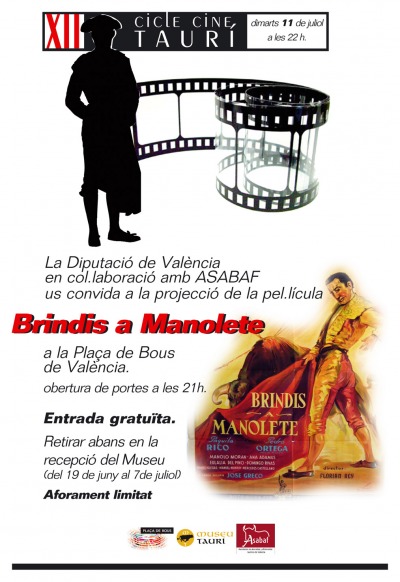 El Museu convoca anualment la programació del Cicle de cine taurí durant el mes de juliol amb la projecció de dos pel·lícules. Obrim la Plaça de Bous i el públic pren la plaça com a espectadors. L'entrada és gratuïta, prèvia arreplegada d'entrades en la recepció del museu. L'aforament és limitat per a estos espectacles.